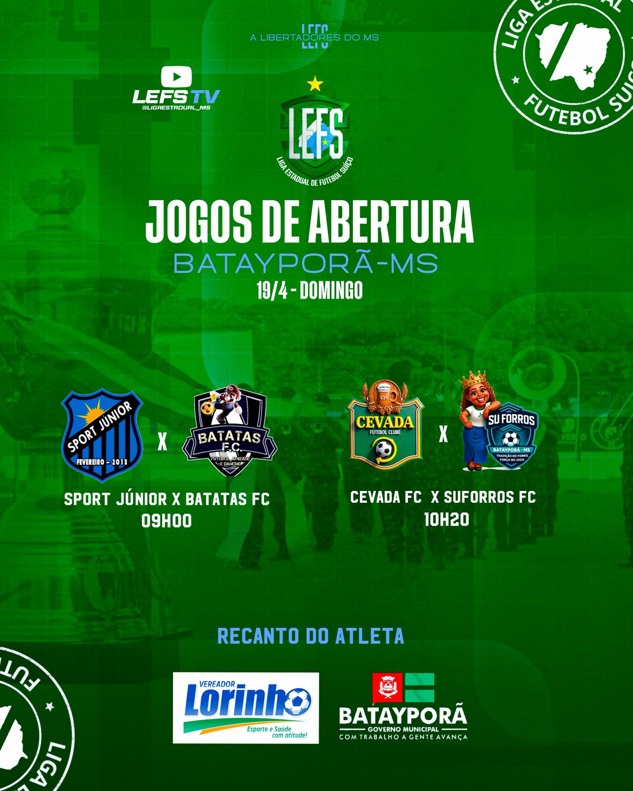Batayporã será novamente palco de um dos maiores eventos do futebol amador de Mato Grosso do Sul. A 4ª edição da Libertadores do MS, promovida pela Liga Estadual de Futebol Suíço (LEFS), tem início neste domingo (19), no município, reunindo equipes e um número recorde de participantes.