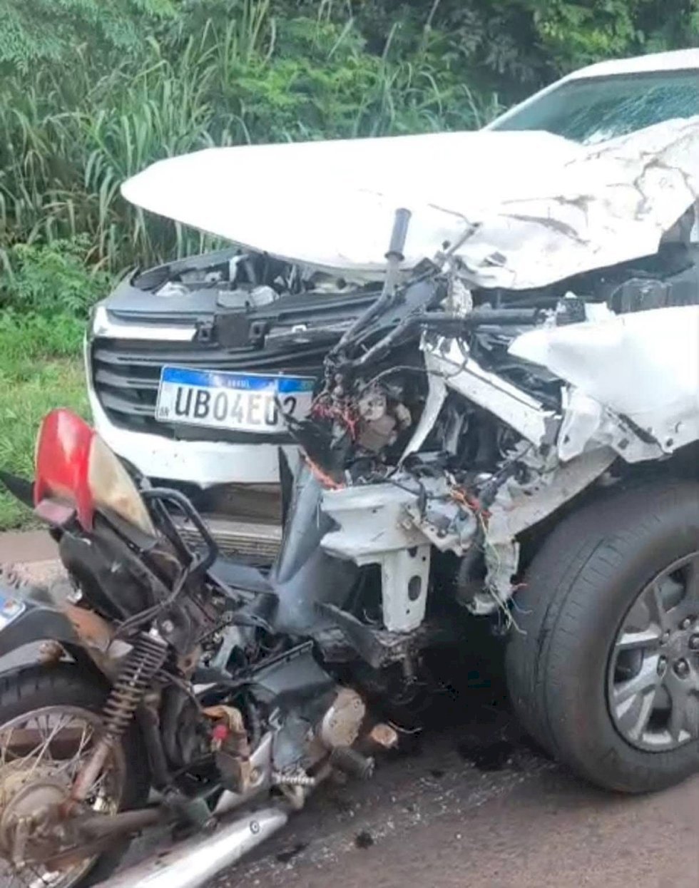 Com o impacto da batida a motocicleta modelo Biz de cor preta acabou acoplando à frente do veículo Ranger, ocorrido por volta das 5h20 no KM 206 da BR 163, entre os municípios de Caarapó e Juti.