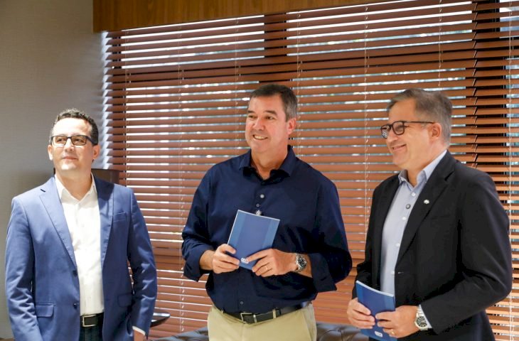 O governador Eduardo Riedel recebeu hoje (23) um exemplar do manual, entregue pelo controlador-geral do Estado, Carlos Eduardo Girão e pelo diretor-geral de governança e compliance da CGE, Everson Cordeiro.
